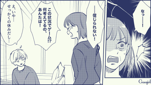 ゲーム三昧の隆司に限界を感じた百合子は、義母に連絡したのでした。「このままでは美琴の祖母とは言えなくなる」と告げられた義母は、隆司を鍛え直すことにしました。義母の言う通り妊娠も出産もしていない隆司には、身を粉にして育児をしてほしいですよね。
