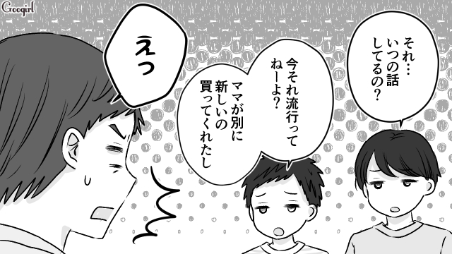 会社員の主人公・義則は妻・里奈と11歳の息子・渚、8歳の息子・颯真の4人家族です。10年前に授かり婚をした義則は、産後の里奈に旅行を提案しても却下されたり、趣味にお金を使おうとしても「お小遣いの範囲内でやりくりして?」と言われ、不満を感じていました。子育てにはお金がかかるためお小遣いが少ないと不満な義則は、「子どもに人生を捧げるのってキツい」と考えるのでした。