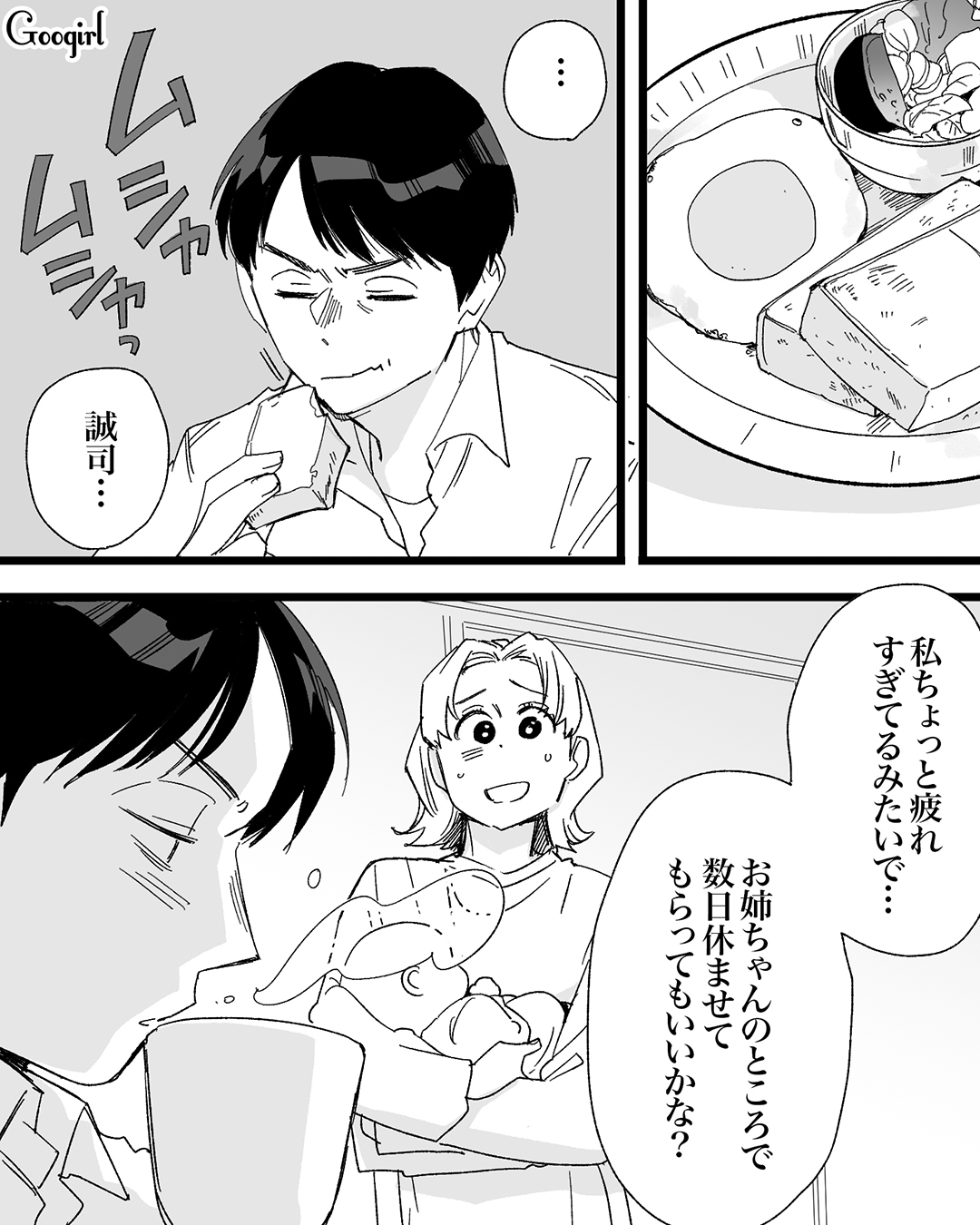 そんな中、姉が真帆の様子を見に来てくれました。体調不良の真帆を見て、少しの間うちに来たらと提案してくれます。姉に頼りたい真帆は帰宅した誠司に相談しようとしますが、育児系の部署に異動になり不機嫌です。到底言い出せる雰囲気ではなく、仕事が大変なら支えるべきと飲み込んだのでした。しかし誠司がその日の夜……?
