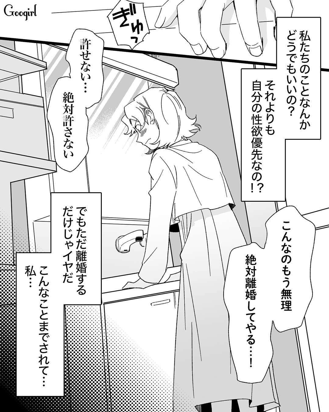 そんな中、姉が真帆の様子を見に来てくれます。体調不良の真帆を見て、少しの間うちに来たらと提案してくれました。姉に頼りたい真帆は帰宅した誠司に相談しようとしますが、育児系の部署に異動になり不機嫌です。到底言い出せる雰囲気ではなく、仕事が大変なら支えるべきと飲み込みます。しかし誠司がその夜、再び夫婦の時間を求めてきます。体調不良の真帆が拒否すると、舌打ちをして苛立ったのでした。