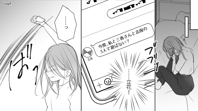 SNSのグループから三春の連絡先を知った立花は、こそこそメッセージを送ります。立花と三春が直接やりとりしていると知った志保ですが、「それほどパーティーを楽しみにしているんだ」と捉え、疑わなかったのでした。