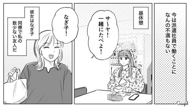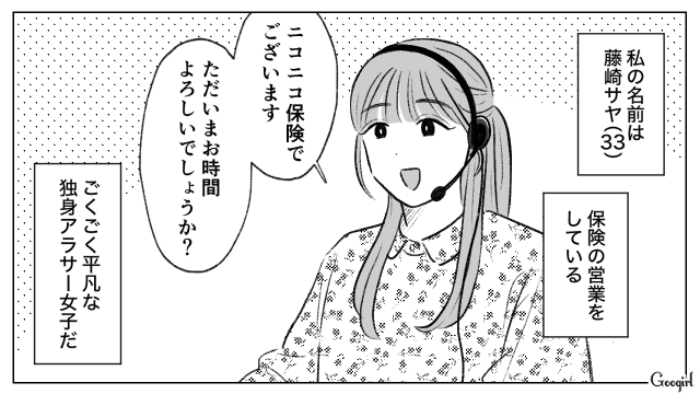 大学卒業後、就職先が決まらず、派遣社員として保険の営業をする主人公・藤崎サヤ(33)。同僚で売れっ子アクセサリー作家・なぎ子と昼食をとりますが、妹から「ドーナツ買ってきて!」とメッセージが来て……?