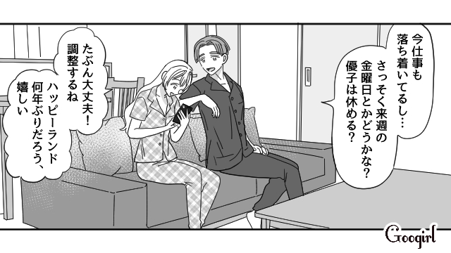 亮介から頼まれてお礼の手紙を書いたのに、迷惑扱いされたらイラっとしますよね。とはいえ義実家関係ではモヤモヤした優子ですが、フットワークが軽い亮介のことは好きな様子。すぐに行きたいと言ったテーマパークの計画を立ててくれたらうれしいですよね。