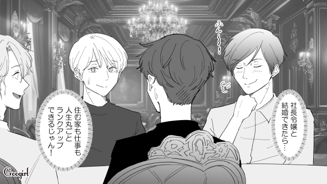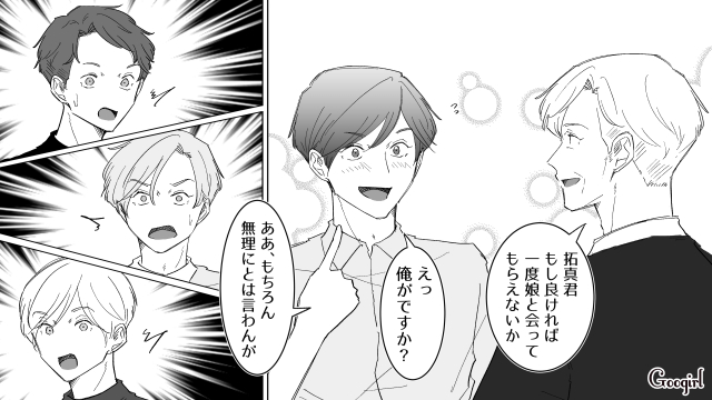 何気ない行動をきっかけに、社長令嬢とのお見合いという思いがけないチャンスを掴んだ拓真。しかし真奈がいるにも関わらず、喜んで話に乗る拓真に友人たちも困惑したのでした。拓真との結婚を待つ真奈の気持ちを考えると胸が痛みますよね。