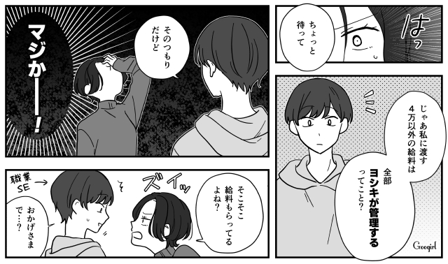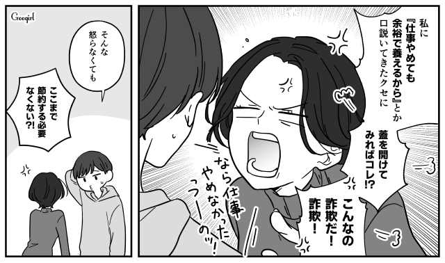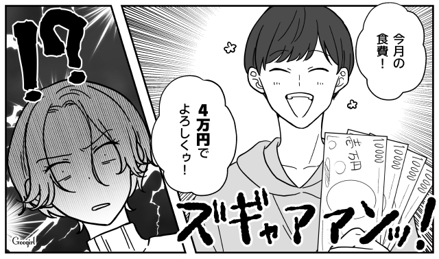 夫・ヨシキと結婚し、寿退社した主人公・花園シオリ。「仕事を辞めても余裕で養える」と豪語していたヨシキでしたが、食費を月4万円しかくれず……?