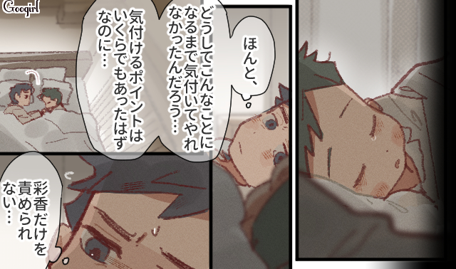 不安そうな彩香から目をそらし、単身赴任を決めた直哉。ふたりに元気がなかったり、家の様子がおかしいことに気づいていながらも、見て見ぬふりをしたことを反省したのでした。以前から小さなSOSが出ていたことを考えると、彩香だけを責められないですよね。