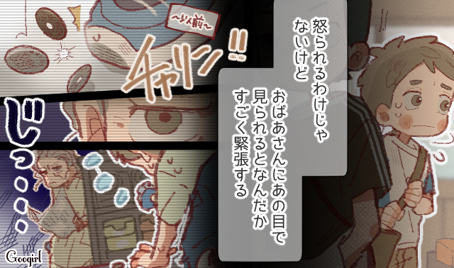 これまで一番仲がよかった彰斗に、苦手意識を持った慎太郎。家で遊べないならと駄菓子屋に行きますが、じっと見つめてきたおばあさんに怖くなったのでした。怒られるわけではないとはいえ、無言で見られたら監視されているようで緊張するかもしれませんね。