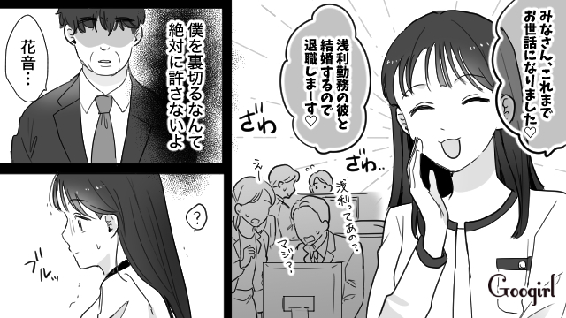 幹夫と牧瀬の不倫が嘘だと知り、花音は噂を流した女性社員に怒りをあらわにします。しかし勝手に関係を持ったのは花音であり、自分たちが強制したわけではないと一蹴されました。いままで散々人の彼氏を略奪した花音は周囲だけでなく、離婚話がまとまった幹夫からも恨まれたのでした。