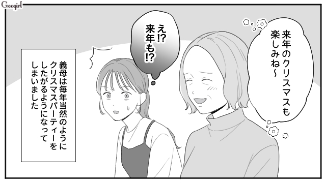 毎年恒例だった義両親とのクリスマスパーティー…ようやく家族水入らずで過ごせた話 -