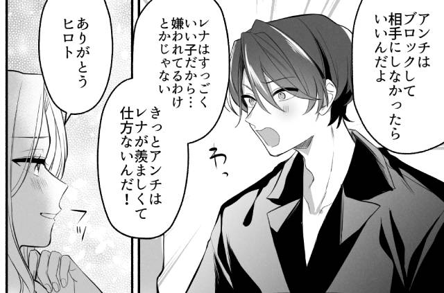 彼氏のヒロトの励ましで、少し落ち着いたレナなのでした。たった一人のアンチのせいで、いいコメントをくれる人のことも疑って見えてしまうのかもしれませんね。インフルエンサーとして活躍する彼女を、理解して支えてあげる彼氏は素敵です。