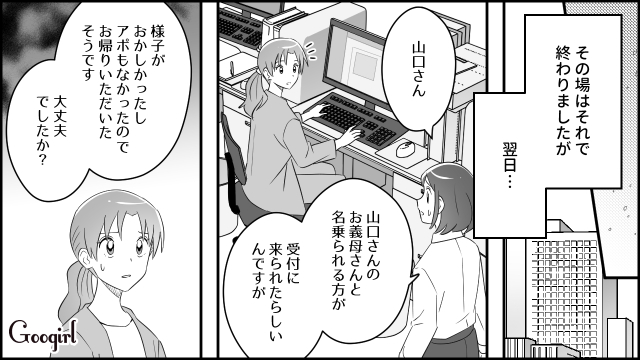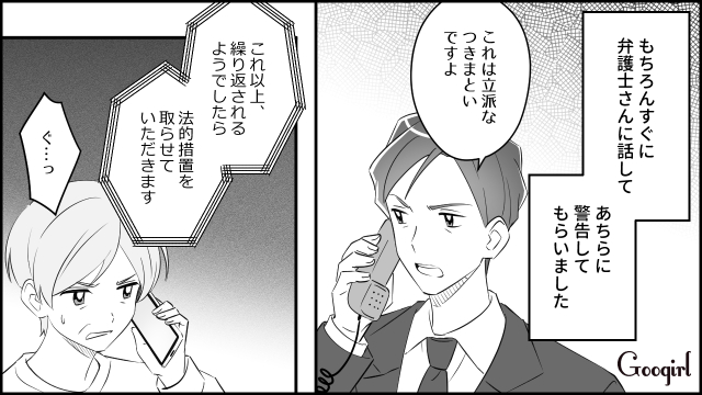 秋奈が離婚宣言しても、なお点数をつけてくる義母には呆れますね。しかもこれまで秋奈個人を攻撃していた義母でしたが、それでは飽き足らず会社にまで押しかけてきました。自分ひとりじゃ対応も難しいからこそ、弁護士がきちんと警告してくれてよかったですね。