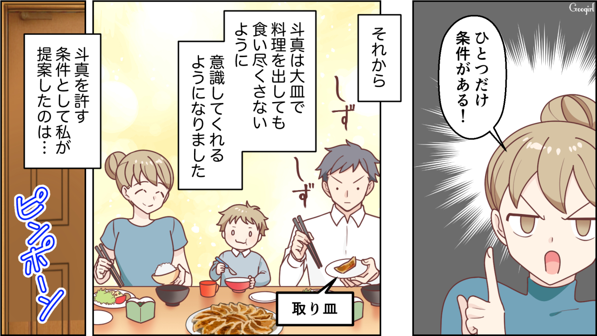 自分が食い尽くされる側になって、はじめてそのつらさがわかった斗真。義母に怒られて以来、大皿で料理を出しても気をつけるようになったのでした。ミナトのためにも、今後は食い尽くしを控えてほしいですね。