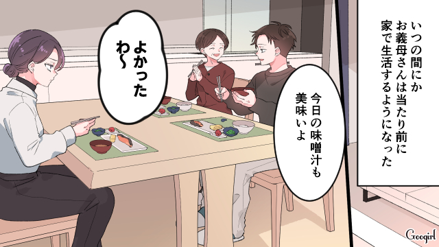 義母との同居生活が当たり前になってしまい、ストレスを抱えた未亜。さらにこのタイミングで妊娠が発覚し、複雑な気持ちになったのでした。未亜の体調は心配せず、跡取り発言ばかりした義母は思いやりがないですよね。