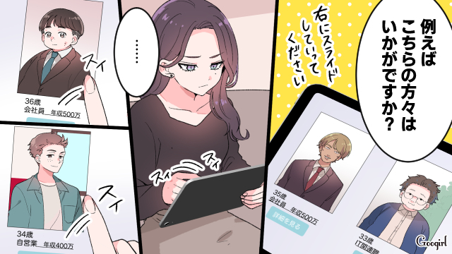 結婚したら幸せになれると考える30歳の主人公・川崎未亜は、結婚相談所に出向きます。カウンセラーに「普通の人」を望みますが、紹介されたのは条件外ばかりの人で……?