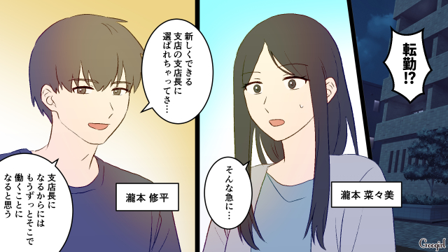 主人公・瀧本菜々美は夫・修平とふたり暮らしです。このたび修平の転勤が決まり、リモートワーク可能な菜々美は一緒に引っ越すことにしたようで……?
