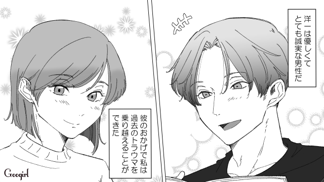 主人公・松本梢は彼氏・桐谷洋一との結婚を控えており、幸せいっぱいの日々です。そんな梢ですが、元カレ・亮二との間につらい過去があったようで……?