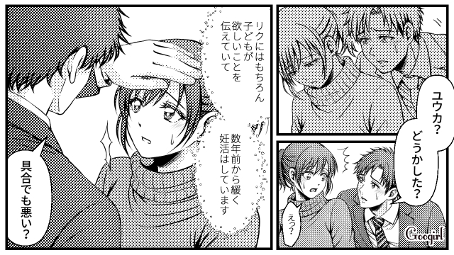 主人公・ユウカは夫・リクと結婚して5年目です。これまで緩く妊活をしていましたが、34歳を迎えたユウカは年齢的に焦りを感じていました。