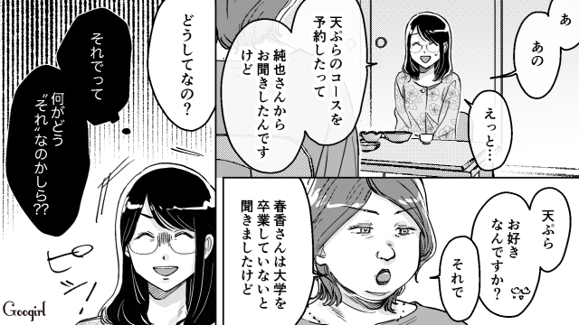 帰宅後、春香は母・圭子に今回の件を伝えますが、上から目線な純也に激怒します。そして圭子は純也にハッキリ言い返さない春香にもイライラするのでした。「純也さんは私なんかとはレベルが違う」と自分を卑下する春香に、圭子は「子どもがバカにされるのは親をバカにされるのと同じ」「言われっぱなしでヘラヘラして、一番悪いのは春香」と怒ります。