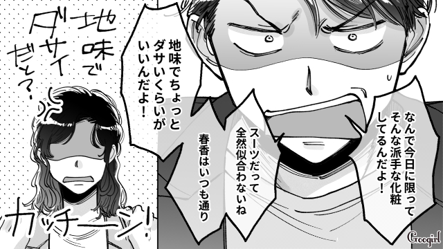 純也から「迷って遅れたりするなよ?」「ちゃんと手土産持って来いよ?」と高圧的なメッセージが届いた春香。いよいよ天堂家に到着しますが、キレイになった春香を見て純也と純也母は唖然とします。さらに地味だけど素直で大人しいだけが春香の取り柄と言う純也に、あんたとは結婚しないと宣言したのでした。