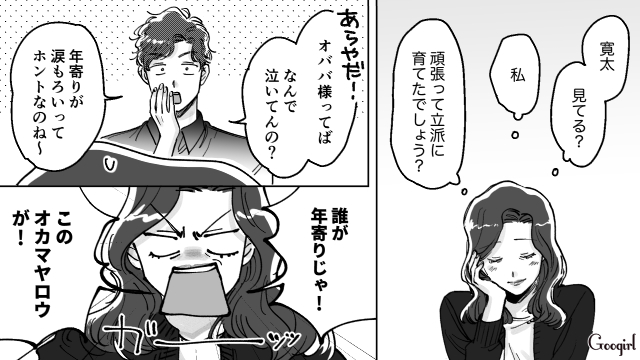 太郎を連れて和光にやってきた圭子は、隣の部屋で3人の会話を盗み聞きします。純也の母だけじゃなく、純也まで春香の学歴や趣味をバカにしており、圭子は苛立つのでした。さらにふたりは母子家庭という春香の生い立ちにも嫌味を言ってきます。春香はどんなに酷いことを言われても怒れない自分に苛立ち、圭子は「春香をバカにされるのは許せない!」と悔しさから涙を流します。