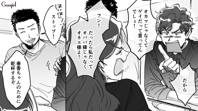 その言葉にカチンときた春香は「たったひとつの夢も諦めて、やりたくない仕事をしている私の気持ちなんかわからない」と言い返し、高校時代の元恋人でゲイの太郎に電話で話を聞いてもらいます。太郎はアパレルのハイブランド「フォス」で店長をしており、常連の圭子とも親しい間柄です。太郎に話を聞いてもらい少し冷静になった春香は、明るくて誰からも好かれる圭子に嫉妬や劣等感を抱いていることに気づきます。