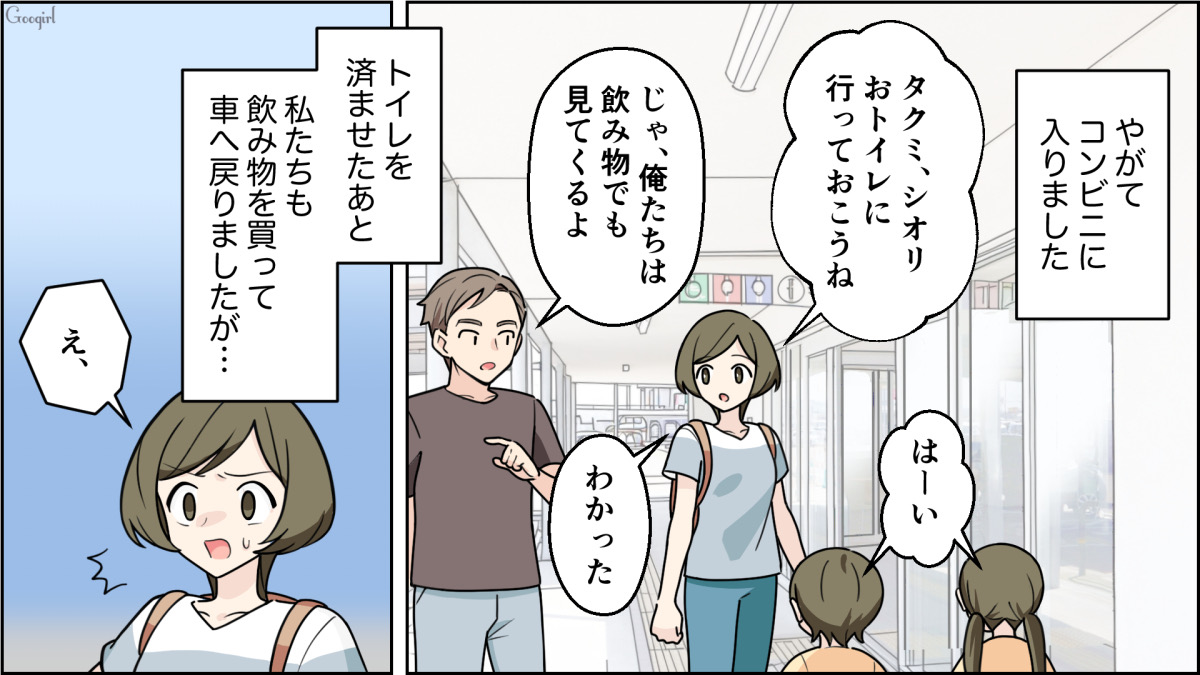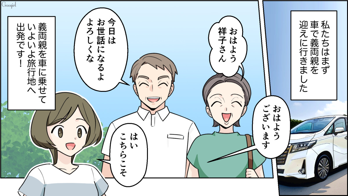 そんなある日、節約家な拓馬から旅行を提案され、祥子は承諾します。しかし後になって義両親も一緒に行くことが判明。子どもたちに旅行の話をしてしまった手前、後に引けなくなる祥子ですが、子どもを無視した行き先ばかり提案する夫に苦言を呈します。そしてついに旅行当日になりました。