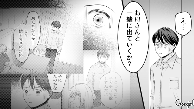 さらに部活のユニフォームを洗濯しろと言い出す海成。体調が悪い中洗濯する実花子ですが、彼女・琴美との電話で「母親が仮病で何もしない」「父さんが出張でいないからって好き勝手してる」と言っているのを聞いてしまいます。具合が悪く家事ができない実花子に、「掃除くらいしろよ」と言い放った海成。少しは手伝ってほしいと伝えますが、「親ガチャ失敗」と暴言を吐きます。限界を感じた実花子は、「こっちだって子ガチャ失敗してんだよ」「あんたなんかもう捨てちゃいたい」と呟いたのでした。