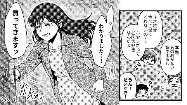 知花まで居座るようになった上、パート前の美和に昼食を作らせようとした義母たち。美和が遅刻すると伝えても段取りが悪いせいだと責められ、言いなりにならざるを得なかったのでした。さらに夕飯に魚を買って帰ったものの、知花がすき焼きがいいと言い出して……?