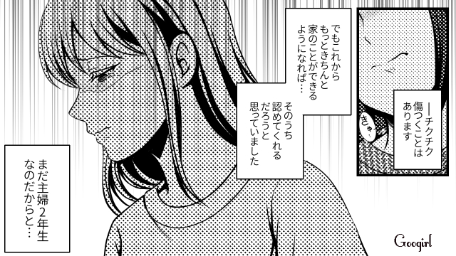 突然ご近所さんを連れてきた上、お茶菓子がないという理由で美和をイマイチな嫁扱いした義母。夕飯でも嫌味を言われたものの、なんとか耐えた美和なのでした。夫がフォローしてくれただけ救いですが、こんな毎日が続いたら気が滅入ってしまいますよね。