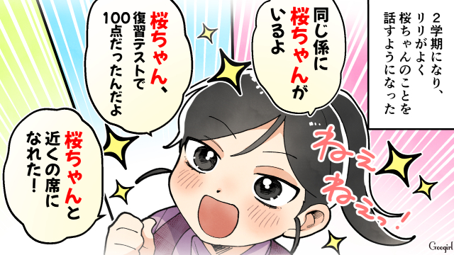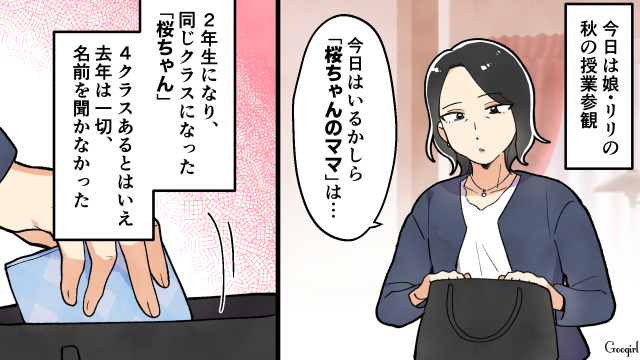 中1の息子と小2の娘・リリを持つ雨宮リカコ。今日はリリの授業参観があり学校に出向きますが、運動会のリレーでリリを抜かした“桜ちゃん”が気になるようで……?