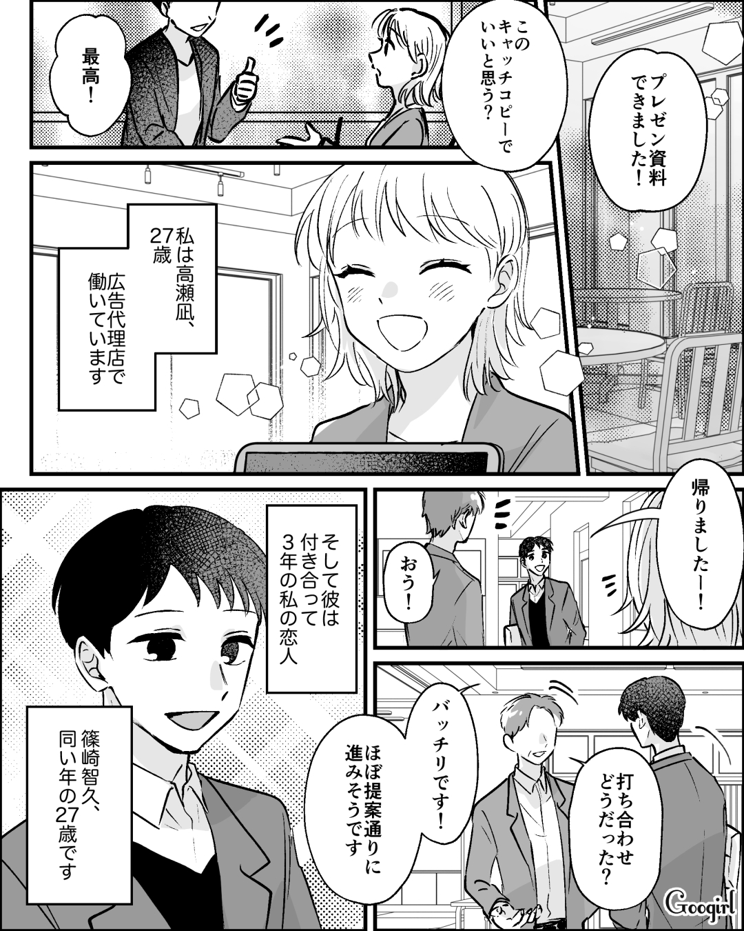 広告代理店に勤務する主人公・高瀬凪は、同僚の篠崎智久と交際して3年です。仕事終わりの週末、ふたりはおうちデートすることになりました。