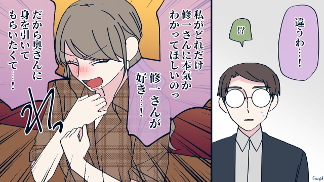まどかと修一の前で、本気の思いを告げた花恋。これはあくまで仕事だと思ったまどかと、花恋の告白を断り、まどかに状況を説明した修一だったのでした。依頼した「別れさせ屋」のハニトラ女性が夫を好きになってしまったら驚きますよね。