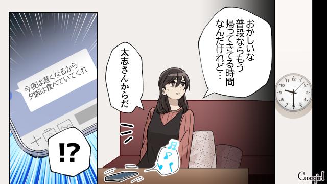 結婚してはじめてのクリスマスイブにもかかわらず、帰ってこなかった太志。翌朝メッセージが来ましたが、「何も心配いらないよ」の意味がわからなかった麻里なのでした。大事なイベントの日に外泊した上、高額なプレゼントを購入していたら浮気を疑うのは当然ですよね。