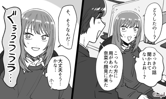 ある日自分の部屋から漫画がなくなっていることに気づいた奈菜。昂輝に尋ねたところ、勝手に弟に貸していたと発覚し注意します。しかし謝罪するどころか「どうせ俺がぜんぶ悪いんでしょ?」と泣いて逆ギレしました。さらに「部屋に鍵でもかければ?」と言われてしまい、昂輝と付き合い続けていいのか悩んだのでした。