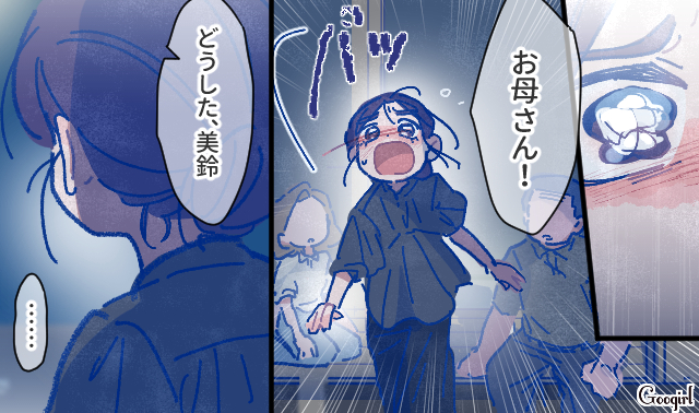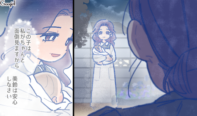 離婚し、滝本家に帰って来た美鈴ですが、流産した自分を責めていました。そんな美鈴のもとに亡き母が現れ、涙をボロボロと流したのでした。散々郷田家にいじめられた美鈴が、これからは幸せな人生が送れるよう祈るばかりです。