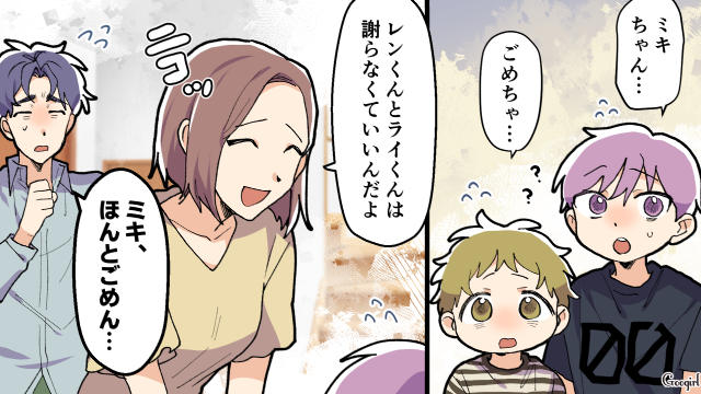 さらにレンが階段からジャンプし、怪我したらどうするのかと注意したミキ。怒るどころかヘラヘラしてばかりのアツシとマリナも注意したところ、家庭方針に口出しするのはよくないと言った挙句、「子どもがいない人にはわからない」と話をすり替えられてしまいます。そんなマリナに対し「危ないことを教えるのが親の役目」と反論しますが、「親なんだから責任取るのは当たり前」と話になりません。いまは外で遊べるところが少ないと主張するマリナに対し、ここは私の家であり、赤の他人に偉そうにされる理由がわからないと言い返します。