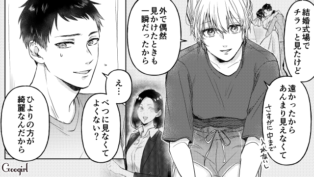 週の半分以上を祐大と過ごしたことで、新婚なのに仮面夫婦だと見下したひより。結婚式の写真を見てマウントをとり、優越感に浸ったのでした。平気で妻の悪口を言った祐大ですが、本当にひよりが好きならそもそも結婚なんてしなかったはず。二股男の言うことなんて鵜呑みにしてはダメですね。