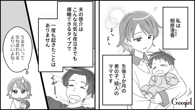 主人公・相原澄香は夫・啓介と生後3か月の息子・結人の3人家族です。慣れない育児に奮闘しながらも、家族3人で幸せな日々を送る澄香。しかし義母が早朝からやってくることに悩まされていました。