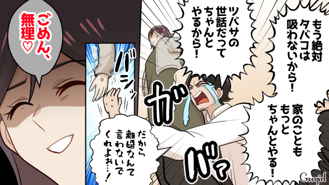 【スカッと漫画】離乳食の茶碗にタバコの吸殻を捨てた夫…我慢の限界となった妻は【最終話】 -